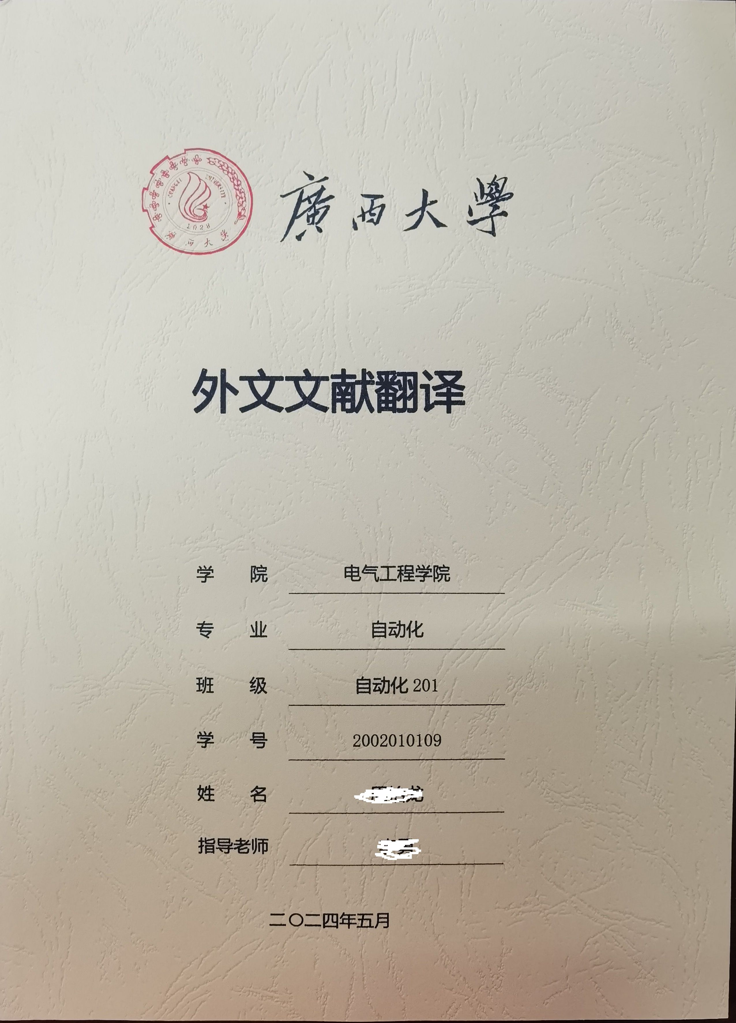 二、   外文翻译采用学校要求的封皮纸张打印装订,英文原文在前,译文在后,译文按毕设的要求排版规范。用系统导出的带水印底板,自己撰写的版本,不能直接用系统导出的文档。