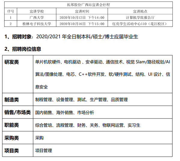 深圳拓邦股份有限公司2021届校招于10月12号下午14:00在广西大学计算机学院报告厅开展线下宣讲。