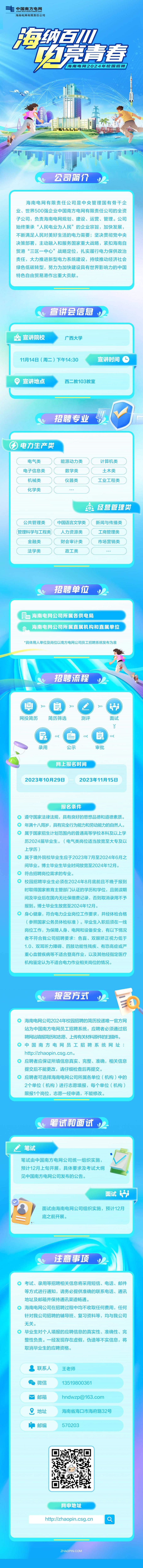 海南电网招聘来了[庆祝]2024届的小伙伴们,海南电网公司将在【广西大学】举办校园招聘宣讲会[太阳]时间:2023年11月14日(周二)下午14:30地点:西二教103教室期待小伙伴们积极参与[转圈]现场还有精美伴手礼等你来拿哦[玫瑰]不见不散[加油]