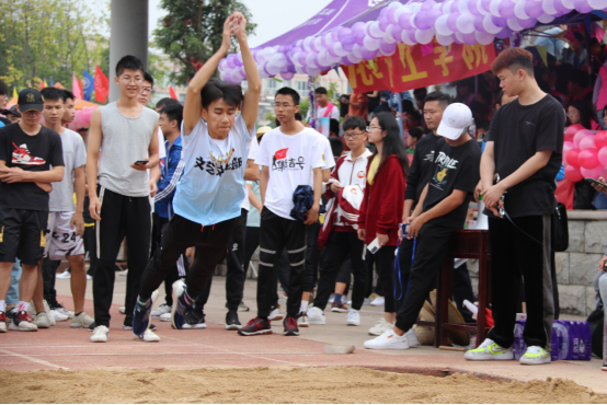 在田赛方面,我院运动员起跳前以离弦箭似的助跑,在踏板上纵腾飞跃全力以赴跳出最优成绩。最终,我院军在男子跳远比赛中取得第三名的成绩。