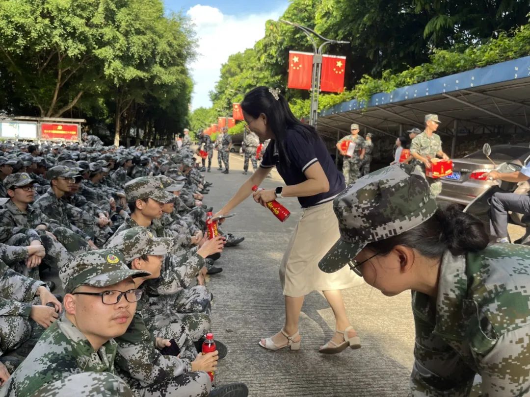 谈话结束后,雷圆媛老师为同学们发放夏日清凉慰问物资,同时提醒大家做好防暑工作,在确保安全的基础上完成各项军训任务。一声声亲切的问候,一句句叮嘱的话语,给予了同学们最真挚的关怀,同学们收到的不仅是物品,更是一份温暖而诚挚的心意。
