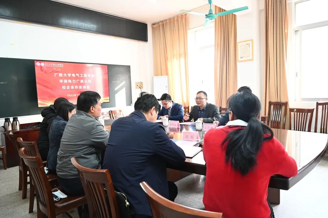 12月12日下午,华润电力广西公司副总经理陈利永、综合管理部部长左孔林以及综合管理部副部长罗圣海到我院开展校企合作交流。学院党委书记梁志坚、党委副书记雷圆媛、副院长刘辉、机械工程学院副教授陈春香、团委副书记蒋冬连参加交流会。