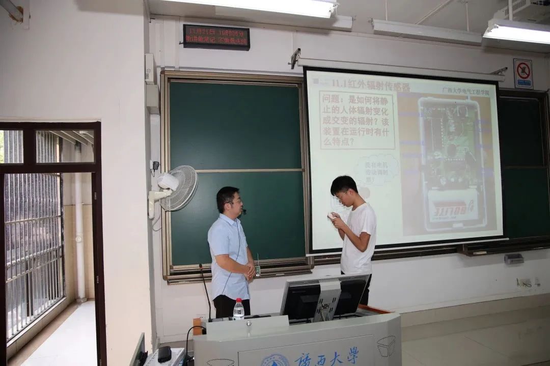 随后,韦老师结合超声波雾化器、超声波焊接机、超声波探鱼器等工程应用案例,讲解超声波传感器技术的发展及对我国经济、环境和社会发展的影响,激励同学们树立“学有所成、技术报国”的情怀。