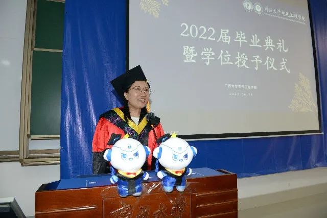 6月24日上午,广西大学beats365(中国区)-唯一官方网站2022届毕业典礼暨学位授予仪式在第六教学楼拉开序幕,院党委书记梁志坚、院长双丰、副院长胡立坤、副院长刘辉、副院长黎静华、副院长于婷、研究生导师代表、毕业班班主任和全体辅导员出席典礼。院党委副书记雷圆媛主持毕业典礼。
