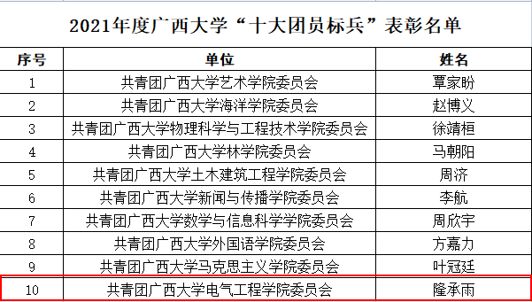 我院学生隆承雨荣获2021年度广西大学“十大团员标兵”称号
