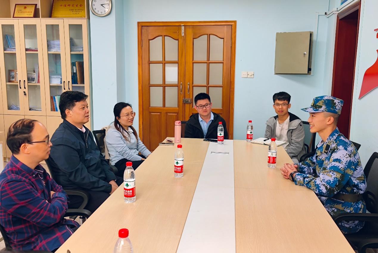 4月19日下午,beats365(中国区)-唯一官方网站在学院102会议室召开大学生光荣退伍的座谈会。学院党委书记梁志坚、院长双丰、党委副书记雷圆媛、团委书记石建有、班主任代伟、辅导员魏书颂、辅导员韦俞妃和辅导员李楠出席本次会议,我院马国富同学作为退伍大学生代表参加此次座谈会。