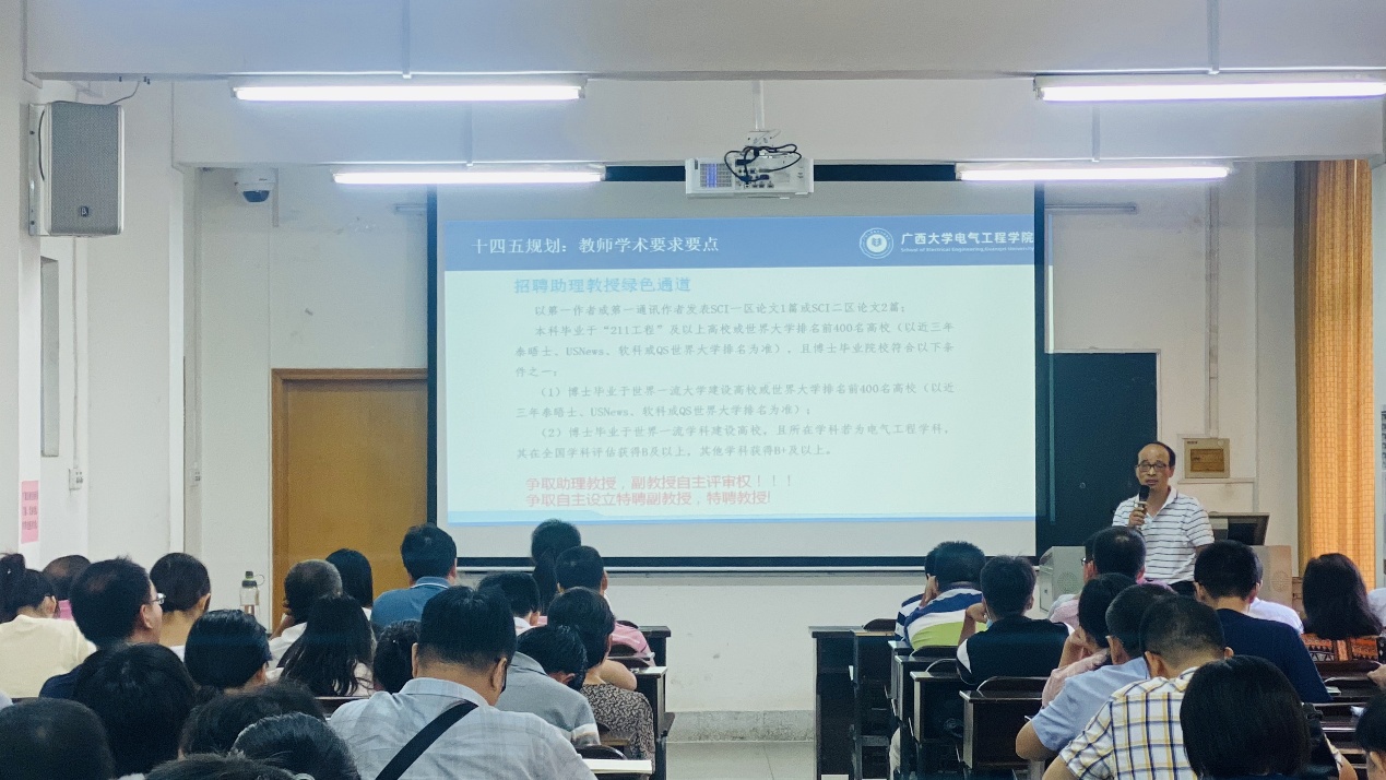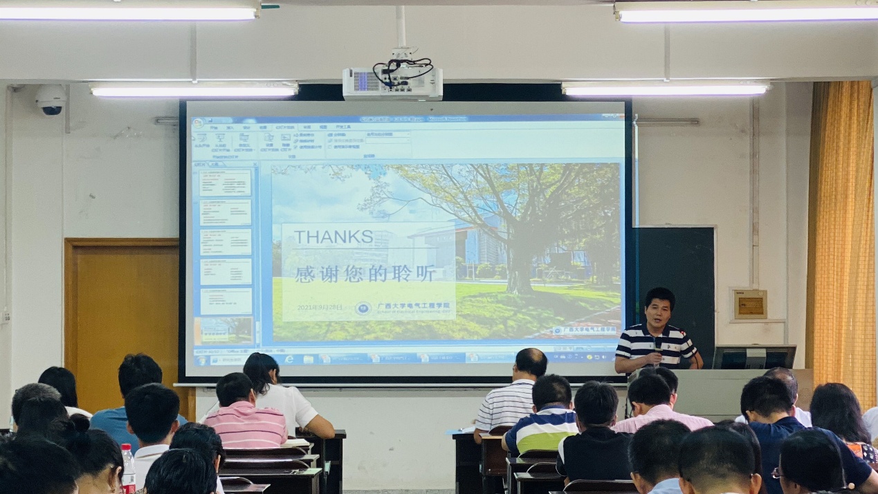 双丰院长总结了学院上半年的工作,并介绍下半年学科建设、研究生管理、科研管理、学生工作和行政管理等各项工作计划,重点说明了学院十四五规划编制的情况以及与广西电科院联合组建的自治区重点实验室情况。