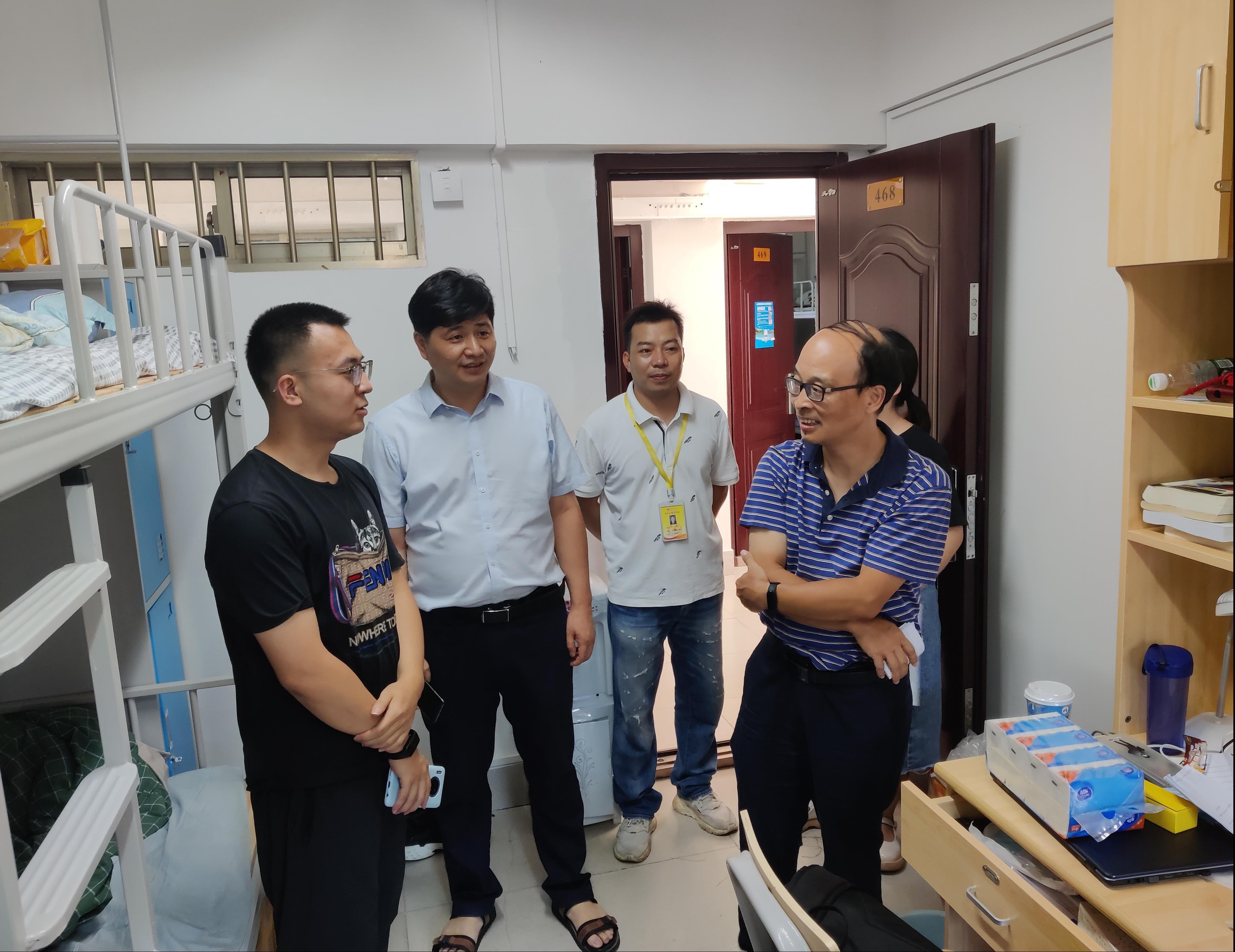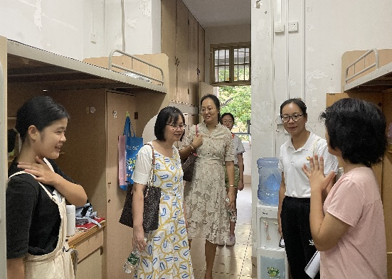 在走访我院新生宿舍的过程中,学院领导老师亲切地问候了同学们,了解同学们的住宿情况,关心新生是否能适应南宁较为炎热的气候,学生的住宿环境是否良好,如发现用具损坏应尽快报修。并询问了同学们的家乡,聊家乡的风土人情和初入西大的感受,对学校的伙食是否习惯、前来学校的路途是否顺利并嘱咐他们在学习和生活中要多和老师沟通,做好学习和生活上的计划安排。