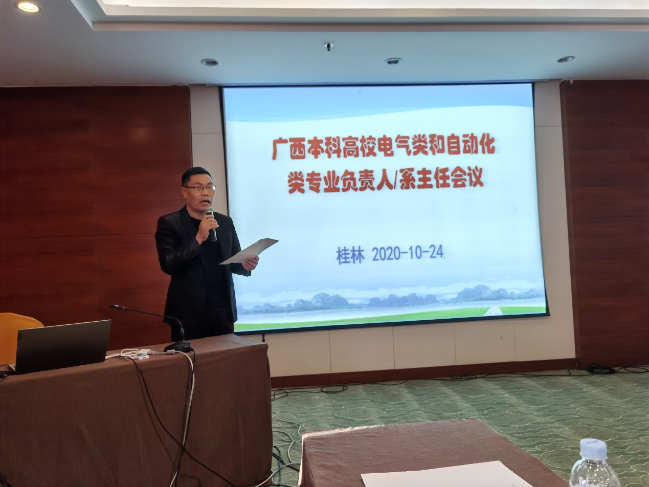 为加强我区各高校电气类和自动类专业的联系,2020年10月24日广西本科高校电气类和自动化类专业负责人/系主任会议在桂林召开,会议由广西本科高校电气工程及自动化类教学指导委员会主办,桂林理工大学机械与控制学院和广西大学beats365(中国区)-唯一官方网站承办。会议邀请桂林理工大学教务处副处长致欢迎辞,教指委委员伍锡如教授代表教指委致开幕辞。