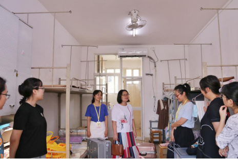 在新生宿舍里,学院领导、老师们向新生家长详细介绍了电气专业的发展与优越性,并围绕日常起居、环境适应、学业基础等入学常见问题做了解答。老师们提醒新生应加强内务卫生管理,细致检查了同学们的空调、门锁、花洒等设施,提醒大家如发现用具损坏应尽快报修,以充分保证同学们的生活质量。