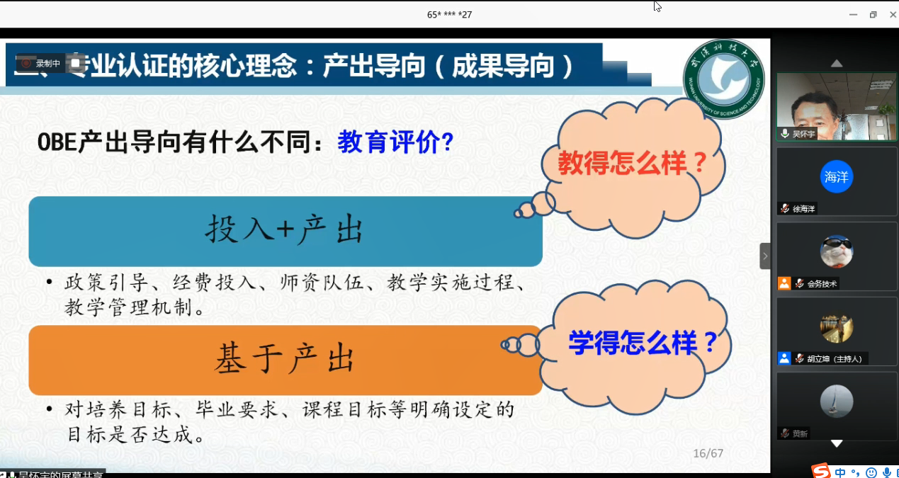 会议的七个报告分别从专业建设与认证、创能力培养、线上教学、产教融合/校企合作、课程思政、课程建设几个方面交流的各自高校的做法与进展。各报告作者与题目分别如下: