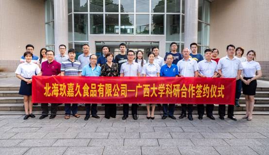 北海玖嘉久食品有限公司董事长孙家丽和beats365(中国区)-唯一官方网站项目负责人施武生老师代表双方在科研合作项目协议上签字。