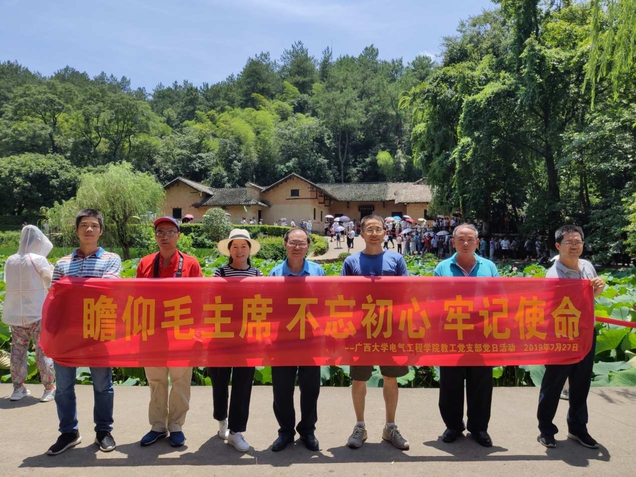 武汉(南方十一省)电工理论学会第31届学术年会于2019年7月25日-7月28日在湖南省长沙市举行。藉此机会,2019年7月27日在学院党委书记梁京章带领下,全体参会教师(党员和入党积极分子),赴湖南韶山开展了主题为“瞻仰毛主席,不忘初心、牢记使命”的主题党日活动。
