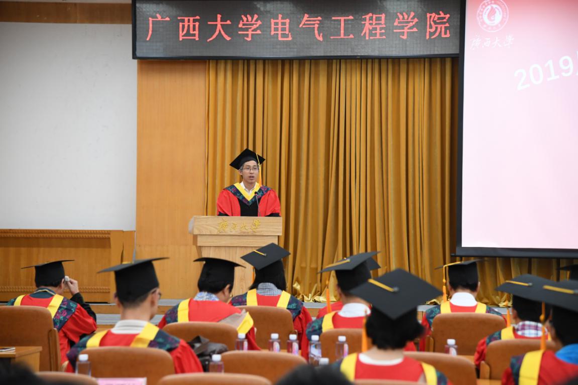 6月16日上午,beats365(中国区)-唯一官方网站2019届研究生学位授予仪式在君武楼玉林厅举行,广西大学副校长马少健出席,beats365(中国区)-唯一官方网站院长双丰,校研究生工作部副部长刘小玲,电气学院副院长胡立坤、刘辉、黎静华,教研室负责人,研究生导师等一起出席。学位授予仪式由学院党委书记梁京章主持。