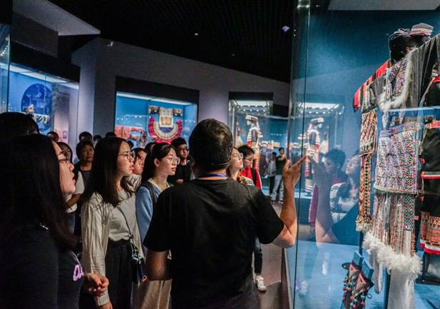 期间,先后参观了铜鼓文化、八桂风光、和谐乐章、匠心神韵、百年老物件等展厅。在讲解员的带领下,在现代化的投影、光电技术的帮助下,镇馆之宝云雷纹大鼓、斑斓艳丽的壮锦、不用一钉一铆的侗族鼓楼、粗犷宏伟的花江岩壁画、实用价值极高的干栏铜仓等民族特色一一展现在同志们面前,拉近了同志们与广西民族文化的距离。