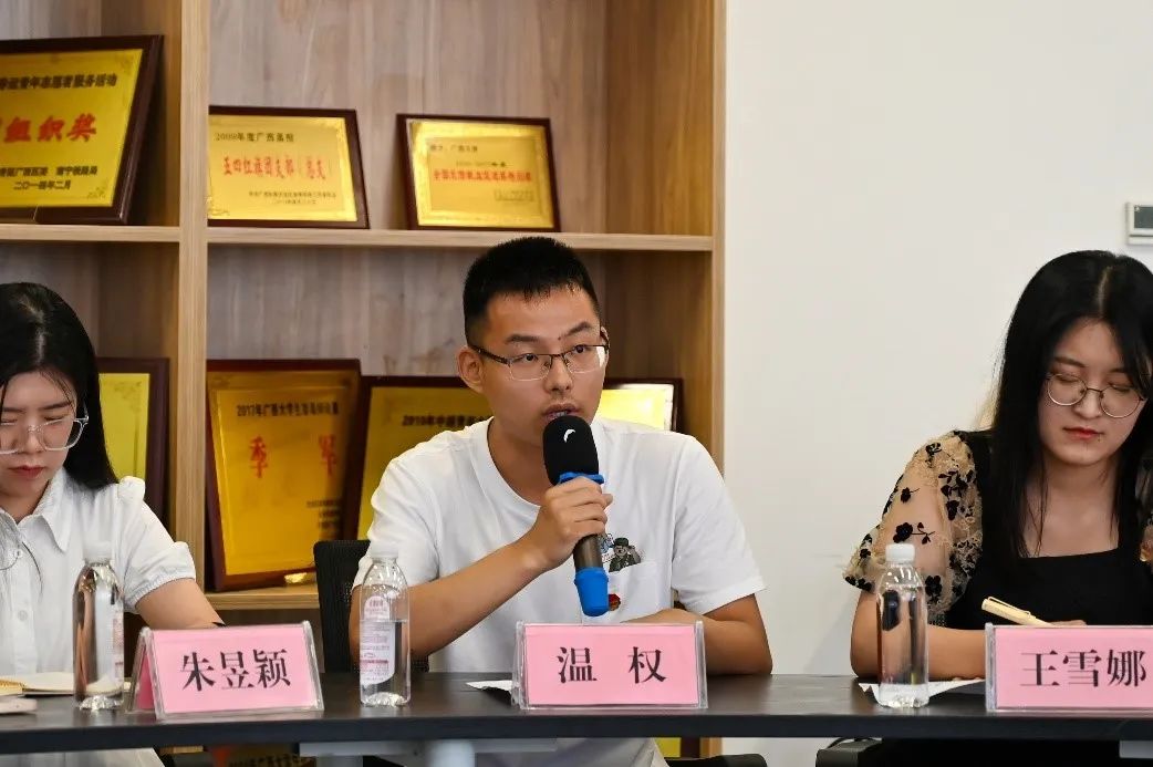 此次沙龙由共青团广西大学委员会主办,共青团广西大学beats365(中国区)-唯一官方网站委员会承办,广西大学beats365(中国区)-唯一官方网站研究生会策划开展。校团委书记谢能重、院党委副书记雷圆媛出席活动并讲话。院团委书记石建有、团委副书记蒋冬连、辅导员魏书颂、辅导员韦俞妃、辅导员李楠和各学生代表参与本次活动。