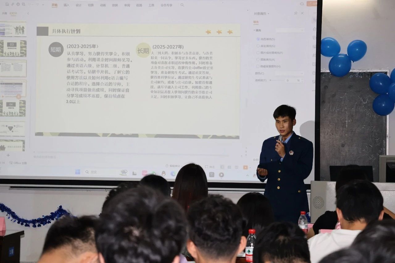 为帮助我院学子树立生涯规划意识,更好的规划自己的大学生活。10月28日,我院大学生生涯规划大赛在我院304举办,经过初赛的激烈角逐,共有8位选手脱颖而出进入本次决赛。决赛评委由学院辅导员李浩铭老师和20级梁嘉慧学姐、张春华学姐担任,校就协总会和各学院就协分会代表、院学生会各部门代表出席本次决赛。