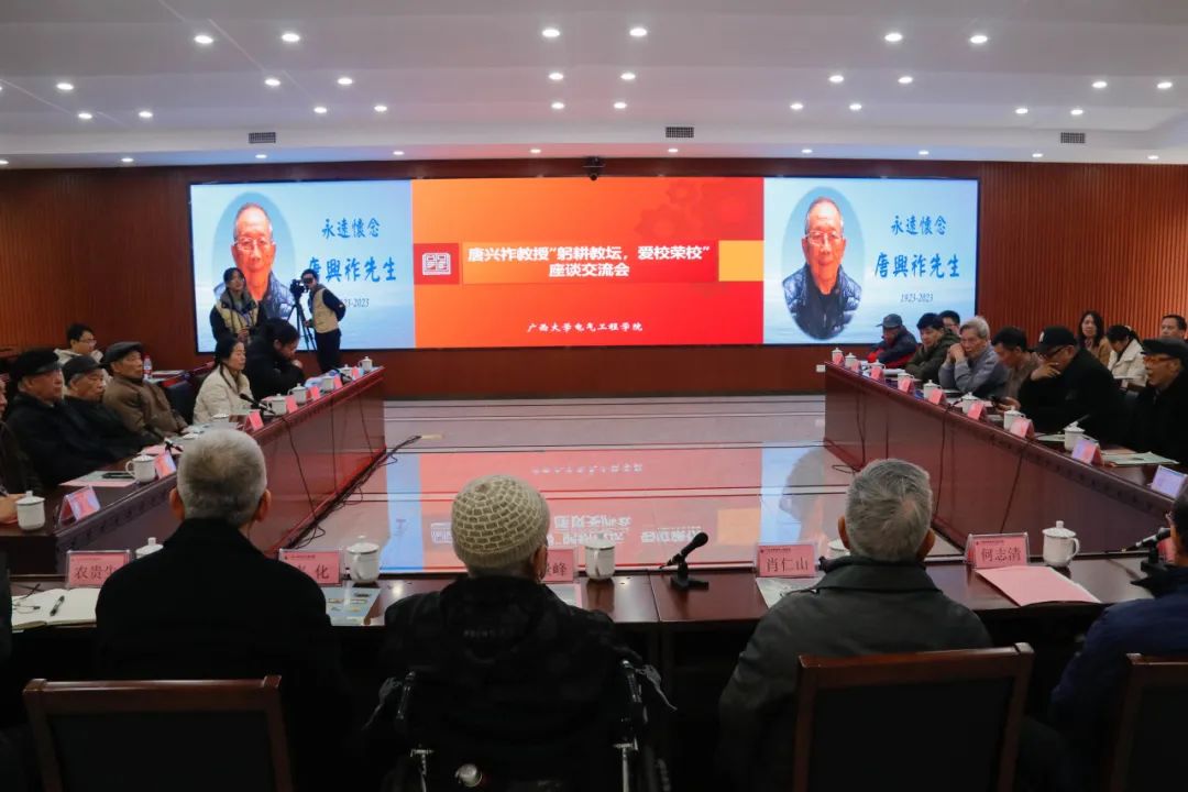 12月23日,我院在君武馆第二会议厅举行唐兴祚教授“耕耘教坛、爱校荣校”座谈交流活动。与会师生深切缅怀唐兴祚教授身上所体现的科学精神、园丁风范、职业操守。广西大学教育发展基金会理事长何志清同志,广西大学离退处副处长农贵生同志,beats365(中国区)-唯一官方网站原党委书记肖仁山老师,学院原系副主任、原民革广西主委吴景峰老师、原广西大学副校长韦化老师等退休教师代表,唐兴祚教授的授业研究生代表、以及学院师生代表等共50余人出席座谈会。学院党委书记梁志坚主持座谈交流会。