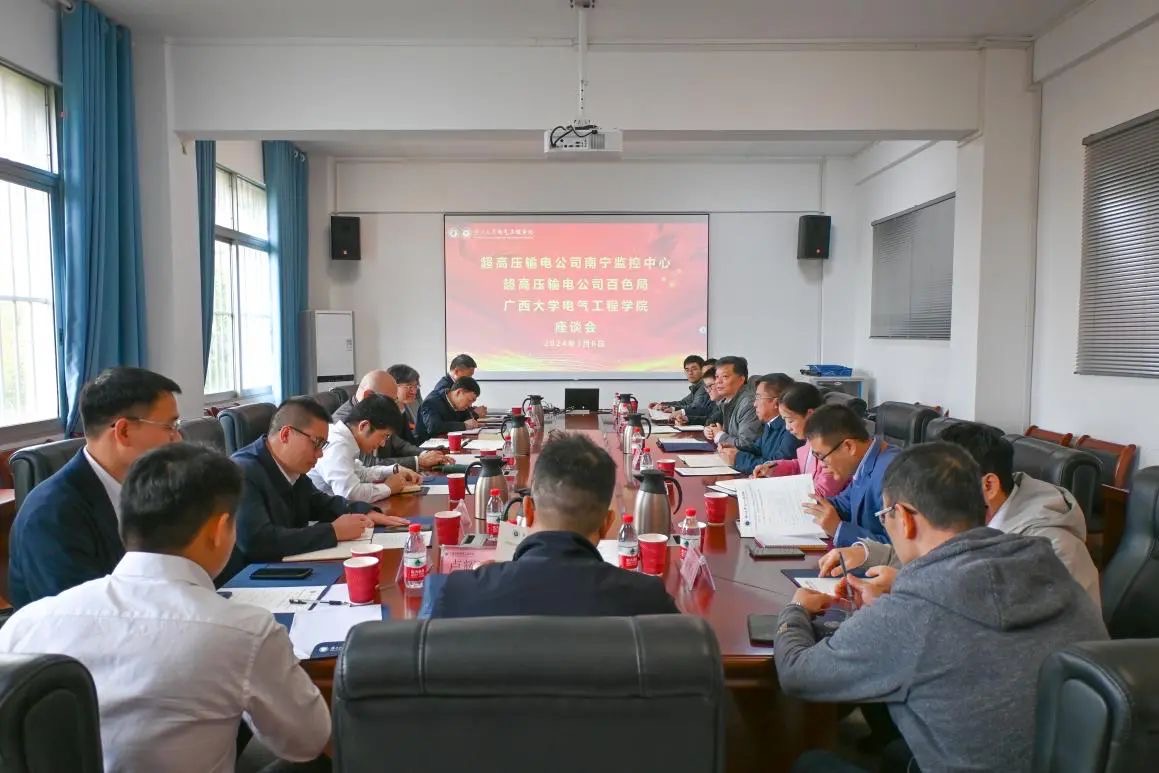 近日,我院与中国南方电网有限责任公司超高压输电公司南宁监控中心(以下简称“南宁监控中心”)、超高压输电公司百色局(以下简称“超高压百色局”)在beats365(中国区)-唯一官方网站315会议室开展以“深化产教融合,推动产学研用协同创新”为主题的座谈会。我院党委书记梁志坚主持本次座谈会。 会议全景 座谈会上,梁志坚书记首先向来访人员表示欢迎,双方领导分别介绍本方参会人员。武新章院长介绍学院近五年来的建设发展情况,包括现有的学科方向与特色、师资队伍与平台建设、人才培养与毕业生就业、教学与科研成果等。电气工程系主任陈碧云介绍了我院广西电力系统最优化与节能技术重点实验室近年来的主要业绩和研究方向。 随后,南宁监控中心蔡宇总经理首先介绍监控中心的组织架构、业务规模以及近年来的科技创新成果。杨启蓓副总经理引用习近平总书记在两会上提到的“高质量发展需要因地制宜发展生产力,不能放弃成功产业”讲话精神,表达了中心对技术创新和人才培养的迫切需求。李茂峰副总经理依据中心发展的实际需求提出了校企合作的具体想法,希望综合西大的人才、技术优势和公司的资源,在双方的合作领域能有新的突破,更好地做到产学融合。超高压百色局生产技术部科技经理谭威龙则介绍了百色局的基本发展情况、科研创新情况以及研究生工作站的运行情况,表示希望与学院携手推动研究生工作站的建设。 会议最后,梁志坚书记感谢了南网超高压专家领导的到访,肯定了校企合作的已有工作成果,希望在未来双方发挥各自优势,深化合作交流,扩大合作范围。 本次座谈会有助于校企双方搭建友好交流的桥梁,增进我院与南方电网超高压输电公司的友谊,方便企业了解学校的教育理念、人才培养方案和科研成果,同时让学校了解企业的市场需求、发展趋势和人才需求,实现互利共赢,为今后双方进一步合作奠定了基础。
