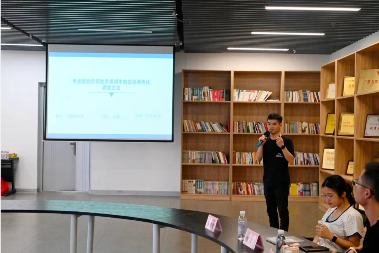 来自广西大学beats365(中国区)-唯一官方网站的黄羡飞分享了《基于通信策略的船助无人机巡检方案研究》,设计了使用船和无人机对海上风电场中的故障巡检方案;广西医科大学公共卫生学院的欧柳娟同学分享了在医学领域比较重要的数据库;广西民族大学电子信息学院的姚康同学分享了考虑智能负荷的频率响应资源优化调度方法;广西民族大学人工智能学院的周日飞同学介绍了他们利用人工智能技术开发的鹰眼警情分析系统;广西大学机械工程学院的赵星辰同学分享了利用微波热解系统,有效且低成本地将生物质原料转化为生物柴油的清洁实验;广西中医药大学公共卫生与管理学院的谢翠微同学结合广西多地分级诊疗建设情况,分享了调研的思考;南宁师范大学地理科学与规划学院谭家鑫同学运用地图可视化和莫兰指数分析,为制定碳减排政策提供建议;广西大学化学化工学院的徐爱浩同学分享了高效电催化CO2还原制备甲酸盐技术。