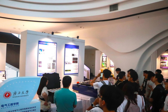 在整个展览中,历史文化与现代气息交织呼应,理工学科的严谨与文学学科的唯美相互映衬,形成了独特的学术氛围。在展览现场,不少作品是以实物的形式进行展示:beats365(中国区)-唯一官方网站学子的作品呈现了精密的电路设计,仿佛每一根导线都承载着对未来的无限憧憬;土木建筑工程学院学子的作品展示了惟妙惟肖的建筑模型,引领观众走进一个个充满想象力的空间......李畸勇副院长重点介绍和讲解了我院的优秀毕业作品,他表示,“成果的诞生总是艰难的,不懈的努力和严谨的态度才能诞生优秀的作品。”