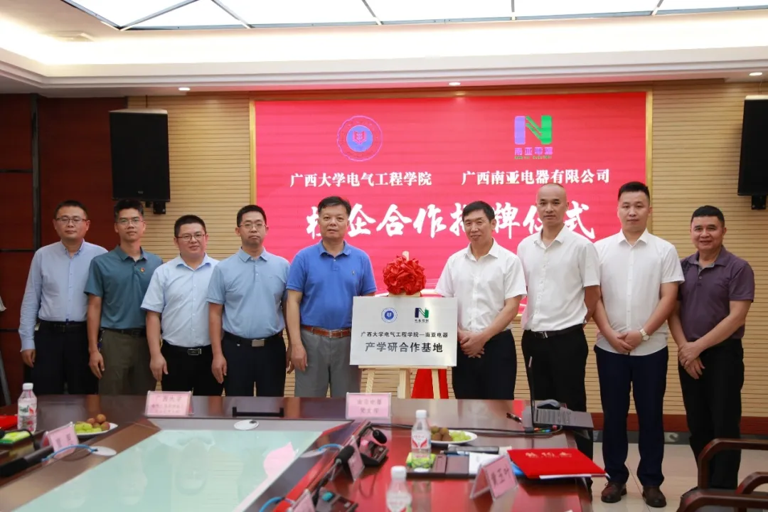 为加强党建与业务深度融合,推动产学研协同创新,实现校企携手共进、构建高质量发展新格局,6月3日,我院党委书记梁志坚带队赴广西南亚电器有限公司(以下简称“南亚电器”)开展校企合作签约暨揭牌仪式。 首先,梁志坚书记一行深入南亚电器生产车间,我院教师结合课程安排与专业特长,就技术问题以及新工科课程建设,与南亚电器工作人员交流讨论。 座谈会上,双方围绕党建工作、科学研究、人才培养等方面进行了分享交流。南亚电器董事长蒋学权简要介绍了南亚电器的发展历程与经营现状,提出后续希望与学院在智能配电、粮食智能仓储等方面开展联合攻关,加强资源共享,共同培育新质生产力,赋能高质量发展。 梁志坚书记表示,近年来,我院高度重视基层党建工作,积极推动党建和业务深度融合,着力打造党建工作品牌,以高质量党建引领高质量发展,推动学院内涵式发展,为学院“双一流”建设提供坚强的组织保障。南亚电器的技术创新需求与我院很多教师的研究方向高度契合,期待校企双方以此次交流活动为切入点,在支部共建、人才培养、科技创新与技术攻关等领域加强合作,推动党建与业务深度融合,共同谱写校企合作新篇章。 会议最后,李畸勇副院长代表我院与南亚电器签署了产学研合作协议,电工与实验党支部书记李深旺与南亚电器党支部签订了党支部联建协议,梁志坚书记与蒋学权董事长共同为“广西大学beats365(中国区)-唯一官方网站—南亚电器产学研合作基地”揭牌。 我院副院长李畸勇、电工与实验党支部书记李深旺,南亚电器总经理史济敏、党支部书记梅仕坤,以及双方代表共20余人参加活动。