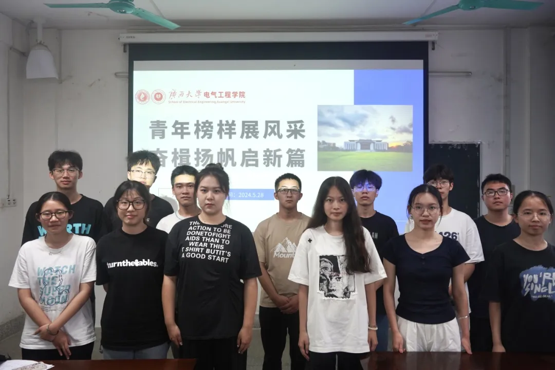 为鼓励同学们向青年榜样学习,弘扬先进榜样的优秀品质和进取精神,5月28日,由共青团广西大学委员会主办,共青团广西大学beats365(中国区)-唯一官方网站委员会、院学生会承办的以“青年榜样展风采,奋楫扬帆启新篇”为主题的青春思享荟主题沙龙活动在我院304教室开展。 主持人王梦瑜同学首先提到了榜样对青年拼搏精神和优良品格的形成所产生的作用,并号召同学们积极向优秀学子学习。 接下来,便是分享交流环节。第一位分享者是电自214班罗彬同学,现任学院团委副书记(学生),综测绩点排名均位于年级前10%,他以“思之愈深、学之愈明、行之愈坚”为主题做了相关分享,他鼓励同学们在学习生活中不畏艰难、刻苦学习,不断提升自身的学习能力。 第二位分享者是电气类227班的彭小佳同学,现任学院团委组织部部长,积极参加社会实践活动,志愿服务时长达100个小时以上。她以“奉献友爱,互助进步”志愿服务精神为主题,与同学们深入交流社会实践经历,分享自己的心得体会,最后号召同学们以实践之火点燃青春之梦。 同学们合影留念 在此次活动中,同学们纷纷提出自己的想法,与两位主讲嘉宾进行了深入互动,在热情洋溢的交流中,同学们对如何学好文化课程、做好社会实践有了更深的理解,表示未来也将以饱满的激情投入到学习和社会实践中去,努力成为国家需要青年人才。