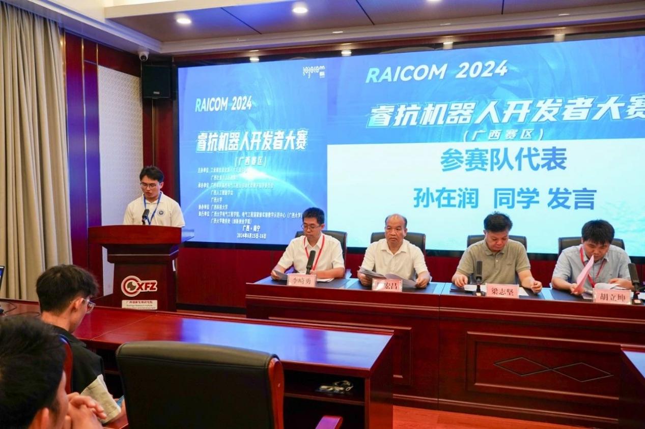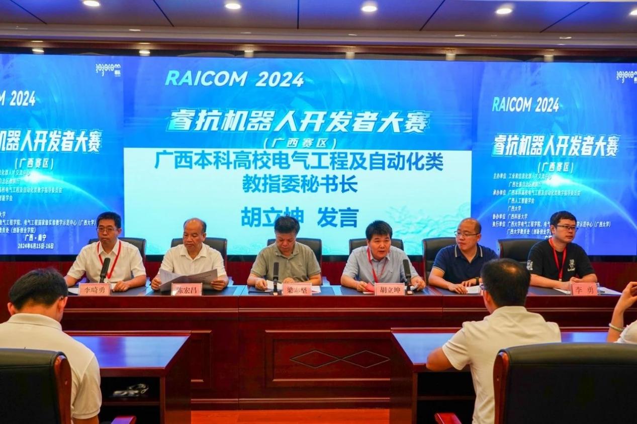 近期,2024睿抗机器人开发者大赛广西赛区决赛在我校举办。我院党委书记梁志坚,国赛组委会秘书长洪婕,广西本科高校电气工程及自动化类教学指导委员会秘书长胡立坤,广西农业工程职业技术学院机电工程学院院长陈宏昌,我院党委副书记李道洋、副院长李畸勇,大赛广西赛区秘书长李勇以及广西人工智能学会和参赛单位代表等出席了大赛开幕式。开幕式由李畸勇副院长主持。 梁志坚表示,睿抗机器人开发者大赛作为国家级重要赛事,是科技创新与人才培养的重要性平台。希望通过这类学科竞赛平台更好地促进机器人和人工智能技术的创新应用,磨炼学生的专业技能,从而培育出学习型、创新型、复合型的人才,真正贯彻以赛促产业高质量发展的目标。 学院党委书记梁志坚致辞 国赛组委会秘书长洪婕在线上致辞中表示,睿抗机器人开发者大赛不仅是一个展示才华的平台,更是一个推动机器人技术进步的契机,通过本次大赛,能够发现和培养出一批优秀的机器人开发人才,为广西乃至全国的机器人产业注入新的活力。 国赛组委会秘书长洪捷发言 胡立坤简要介绍了本次大赛的组织和参赛情况,并指出广西大学beats365(中国区)-唯一官方网站一直以发展战略新兴产业和新型未来产业为方向,致力于提高高等教育质量和教育水平,借助电气工程国家级实验教学示范中心的雄厚资源,创建学院大学生创新创业组织“众创空间”,实现学院大学生创新创业能力的全员、全方位、全过程的培养。 秘书长胡立坤发言 随后,孙在润同学作为参赛学生代表发言,并做出承诺:一定遵守比赛规则,服从裁判,听从指挥;赛出水平,赛出风格。 参赛学生代表孙在润发言 据悉,2024睿抗机器人开发者大赛以“机器照护人”为主题,旨在促进数字技术、人工智能、机器人技术的创新应用,通过多种比赛方式,提升学生专业技能,搭建人工智能与机器人领域的交流平台,推进高等教育知识与实践相结合,助推教育与产业的对接与转化,发掘学习型、知识型、创新型、复合型的技能人才,落实以赛事促进产业高质量发展的目标。 本届大赛由工业和信息化部人才交流中心和广西壮族自治区教育厅主办,广西本科高校电气工程及自动化类教学指导委员会、广西人工智能学会和广西大学承办,广西科技大学协办。本次总决赛为期2天,在广西大学与广西科技大学两个赛点含线上线下赛,其中广西大学包含5个赛项,广西科技大学包含5个赛项。本次大赛涵盖了服务、家居、文化、交通运输等多个领域。大赛共吸引了32所高校的531个队伍参赛,共有283个队伍参加广西赛区线上和线下总决赛。 签名环节 比赛合照