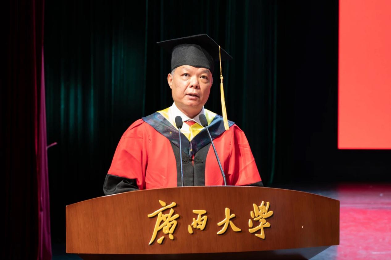 凤凰花开,骊歌渐起。6月25日上午,广西大学beats365(中国区)-唯一官方网站在汇学堂举行2024届毕业生毕业典礼暨学位授予仪式。学院党委书记梁志坚,院长武新章,院党委副书记、副院长刘辉,校党委组织部副部长雷圆媛,院党委副书记李道洋,校研究生院副院长黎静华,校教务处教师教学发展中心副主任胡立坤,校发展规划处副处长张镱议,学院副院长于婷、副院长李畸勇,学院院长助理、君武学者吴晖锽,研究生导师代表、毕业班班主任、教师代表和全体辅导员等出席毕业典礼暨学位授予仪式,李道洋副书记主持活动。