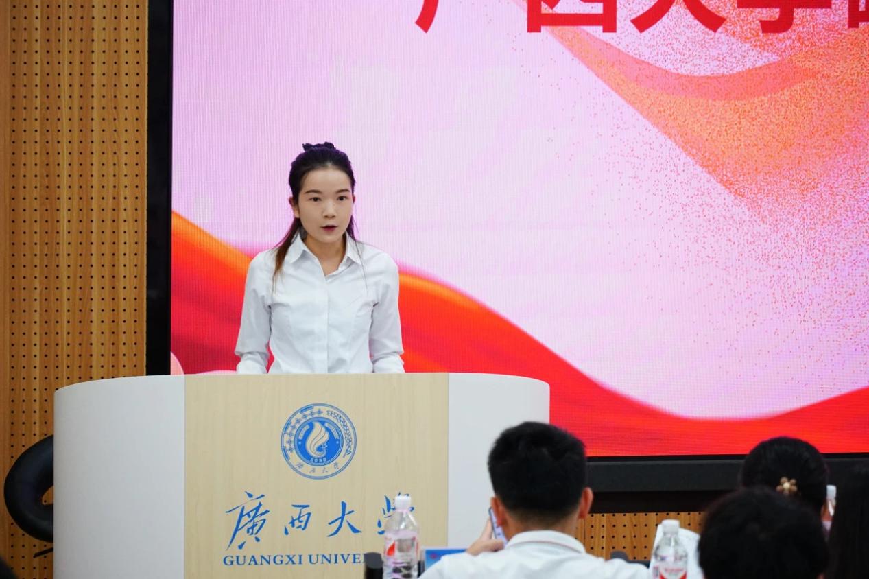 会上,与会代表听取并审议《广西大学beats365(中国区)-唯一官方网站第二十届研究生会工作报告》。罗燕婷代表第二十届研究生会主席团总结了过去一年的工作成果,并期待新一届研究生会能取得更大成绩。