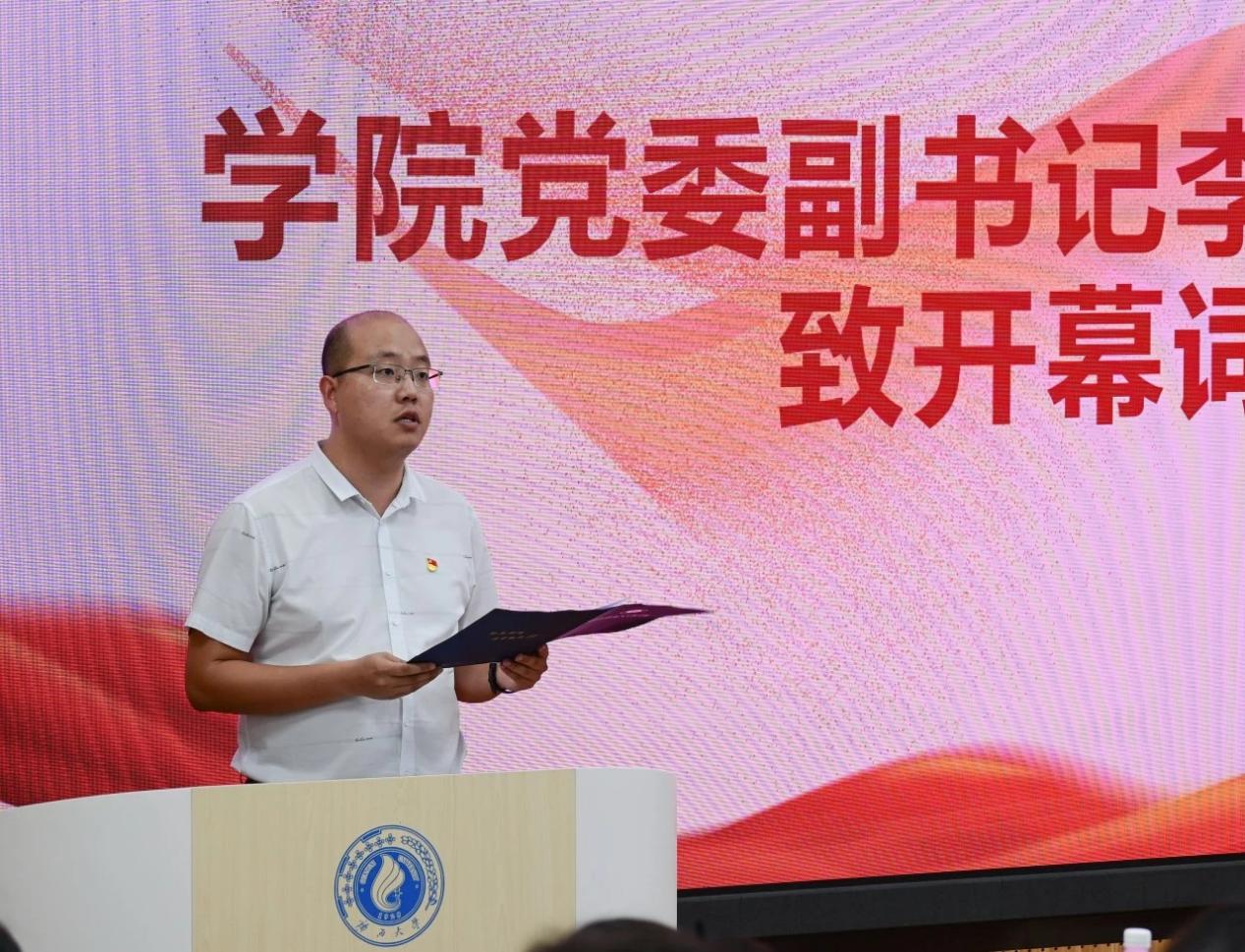 李道洋副书记致开幕词。他对过去一年我院研究生会的工作成果予以高度认同,并代表学院党委对全体同学和新一届研究生会提出三点要求:一是强化思想引领,把牢正确方向。二是聚焦本职工作,增强服务意识。三是练就过硬本领,勇于开拓创新。发言最后,李道洋副书记希望全体同学们学思用贯通、知信行统一,为建设壮美广西贡献青春力量。