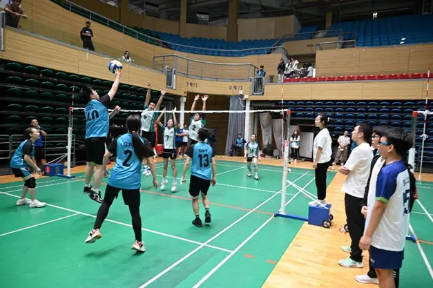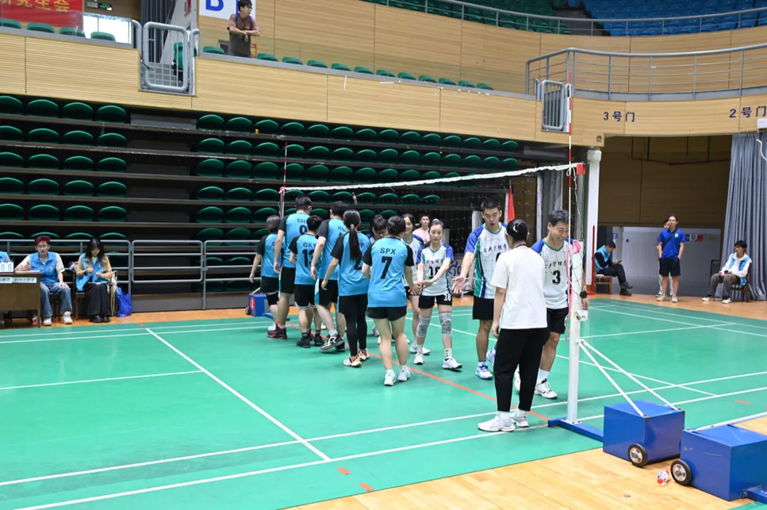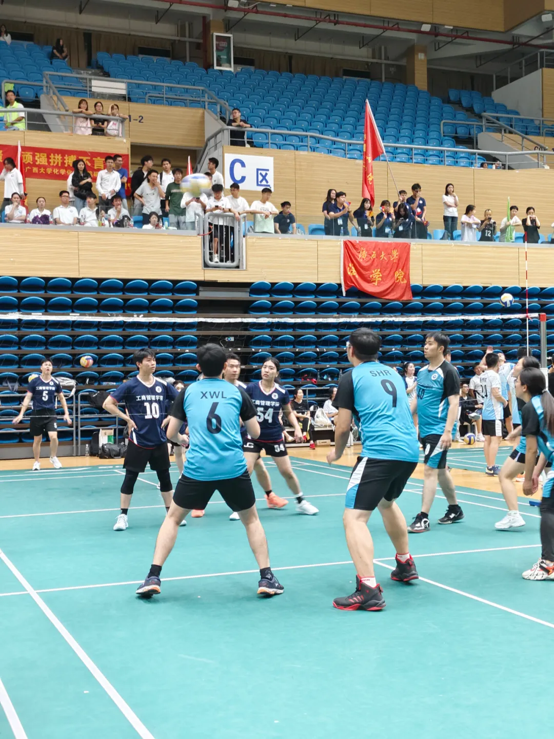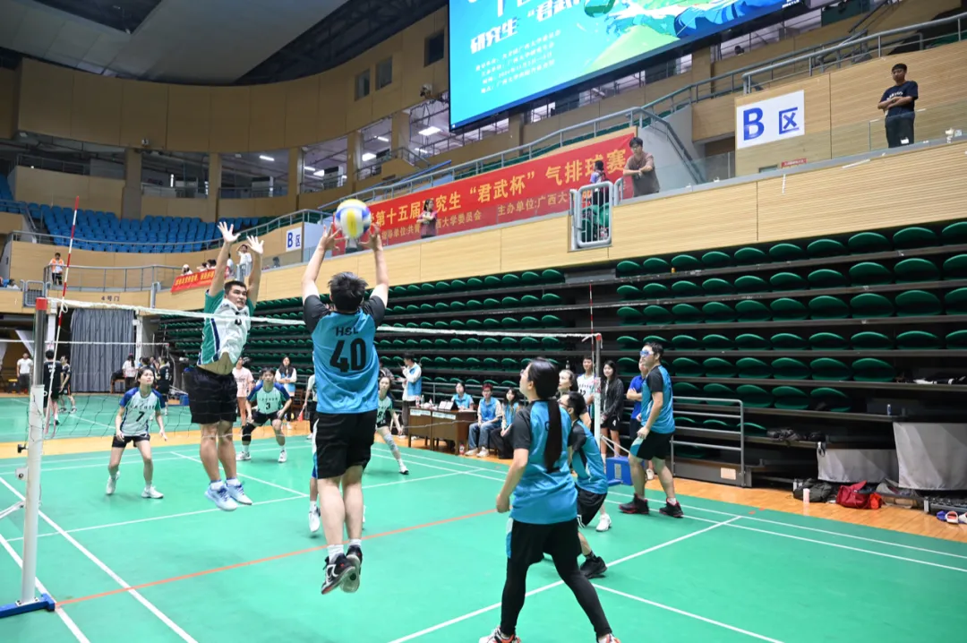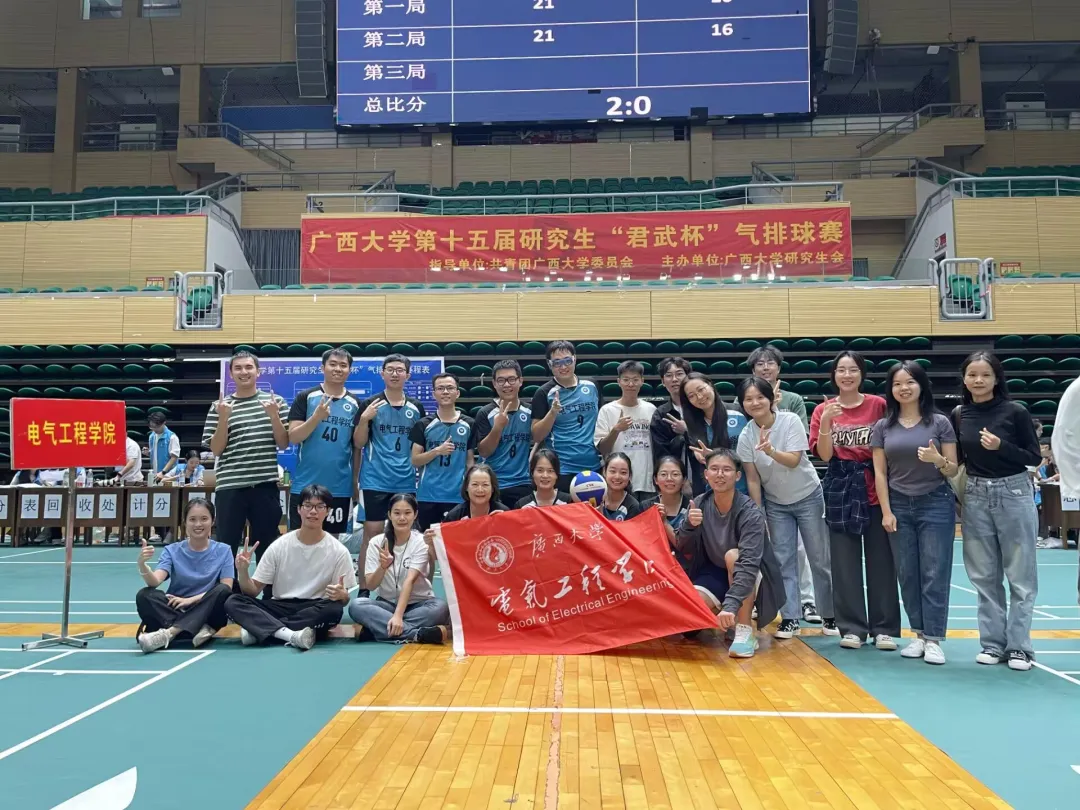 11月2日至11月3日,由共青团广西大学委员会指导,广西大学研究生会主办的广西大学第十五届研究生“君武杯”气排球比赛在广西大学西校园综合体育馆举行。我院代表队11名成员全力以赴,勇赴赛场。 11月2日晚上进行小组赛,我院分别对阵新闻与传播学院、工商管理学院、校级功能型党支部。在紧张刺激的攻防转换、拦网扣杀中,队员们配合默契,发挥了优秀的团队合作和竞技水平。最终以大比分2:0的成绩分别战胜新闻与传播学院、校级功能型党支部,以0:2的成绩惜败工商管理学院。最终,以小组第二名的成绩晋级淘汰赛。 比赛现场 11月3日上午,我院代表队与公共管理学院代表队进行1/8决赛对决。面对对手的猛烈攻势,我院健儿沉着应战,默契配合。在比分落后的情况下,我院气排球代表队坚持“球不落地,永不言弃”的信念,不放弃任何一个球,团结一心、奋勇拼搏到最后一刻。最终,随着裁判的一声哨响,比分定格在了0:2,我院代表队憾负公共管理学院。 双方握手 比赛现场 在研究生“君武杯”气排球比赛的赛场上,我院代表队以青春的名义,挥洒汗水,释放激情,生动演绎了青春的力量与拼搏的精神,止步1/8决赛不是终点,而是我院气排球队继续前进的起点。期待在未来的学习、生活中,电气学子能继续奋勇向前,突破自我,创造佳绩! 合照