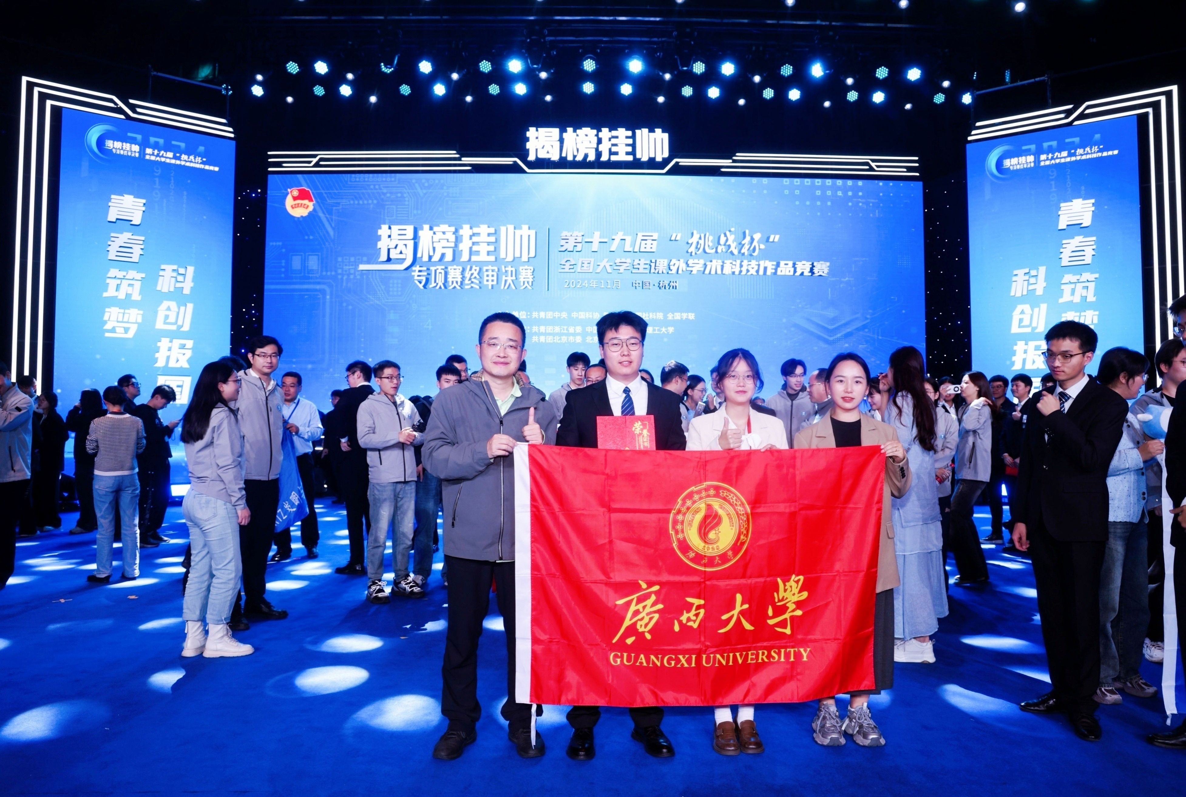 11月15日-17日,第十九届“挑战杯”全国大学生课外学术科技作品竞赛2024年度“揭榜挂帅”专项赛终审决赛浙江场在中国计量大学和浙江理工大学举行。广西大学beats365(中国区)-唯一官方网站高放教授、代伟副教授和物理科学与工程技术学院韦克金副教授指导的学生代表队,在该赛事“量电融合,共创未来——量子经典混合算法的应用探索”赛道中脱颖而出,获全国特等奖,这是广西大学首次在“挑战杯”竞赛“揭榜挂帅”专项赛中荣获全国特等奖,同时也是本届竞赛广西唯一的一项特等奖!本参赛项目获beats365(中国区)-唯一官方网站2024年度“研究生素质能力提升类项目”的资助。