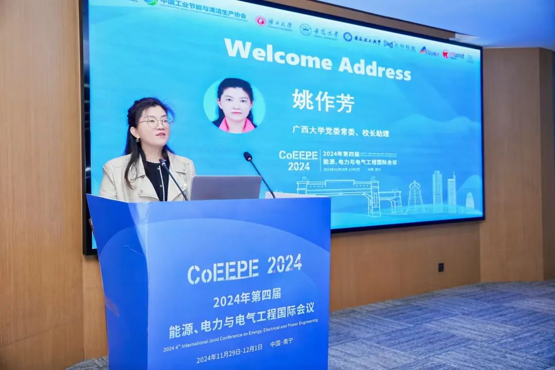 11月30日,由国际电气电子与能源工程协会,中国工业节能与清洁生产协会主办,广西大学、安徽大学和安徽理工大学承办的2024年第四届能源、电力与电气工程国际会议(CoEEPE 2024)开幕式在广西大学举行。广西大学党委常委、校长助理姚作芳出席开幕式并致辞。广西大学beats365(中国区)-唯一官方网站院长武新章教授主持开幕式。 姚作芳助理出席会议 武新章院长主持开幕式 姚作芳作欢迎致辞,她首先介绍了南宁的区位优势,广西大学的校园环境、重点学科、特色专业和学术氛围,同时指出本次国际会议以“创新、未来”为主题,搭建了国际化交流平台,有助于促进能源、电力与电气科研成果的进一步转化,将会对我校的学术发展以及加强与东盟的合作具有重要意义。 安徽理工大学电气与信息工程学院院长吴卫民教授、安徽大学电气工程与自动化学院副院长潘天红教授分别代表两校致辞。吴卫民院长对广西大学近年来取得的发展成果表示祝贺,同时很荣幸来到南宁参加此次国际会议,希望在接下来的学术交流中,能够加强和其他高校的学术合作与交流。 吴卫民院长致辞 潘天红副院长提到我国目前的科技正处于快速发展中,期待专家学者在会议期间充分调动自己,碰撞出不一样的学术“火花”,共同为能源、电力与电气领域的发展贡献力量。 潘天红副院长发言 大会开幕后,东南大学陈武教授、西安理工大学尹忠刚教授、安徽大学胡存刚教授和南洋理工大学王鹏教授分别作了特邀主旨报告。他们各自介绍了电力电子、电机和电力系统等方向的最新技术发展以及相应的科研团队的最新科研成果,激起了参会人员的广泛兴趣,现场气氛热烈。 陈武教授作特邀主旨报告 尹忠刚教授作特邀主旨报告 胡存刚教授作特邀主旨报告 王鹏教授作特邀主旨报告 大会分为2个口头报告和1个展报共3个分会场,会议为从事电气工程和新能源研究的专家、学者和工程技术人员提供了一个共享科研成果和探讨前沿技术的平台。广西大学发展规划处、广西大学beats365(中国区)-唯一官方网站、安徽大学、安徽理工大学、南洋理工大学、东南大学、西安理工大学等多所高校相关领域的近百名专家学者、行业精英及学生代表参加会议。 合影留念