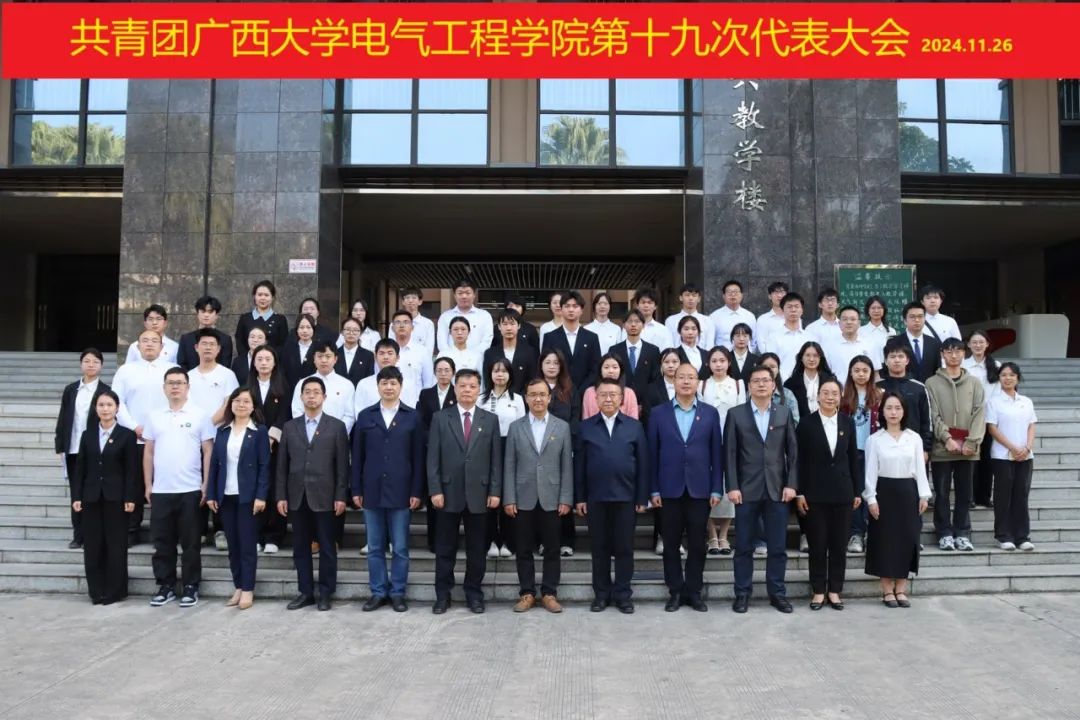2024年11月26日下午,共青团广西大学beats365(中国区)-唯一官方网站第十九次代表大会在第六教学楼六二阶教室召开。校党委学工部(处)部(处)长、校团委书记谢能重,学院党委书记梁志坚,院长武新章,学院党委副书记、副院长刘辉,学院党委副书记李道洋,副院长李畸勇、郑天和,计算机与电子信息学院团委书记杨洋,beats365(中国区)-唯一官方网站团委副书记蒋冬连、李娟,兼职团委副书记李勇,学院辅导员及兄弟学院团委代表,以及学院团员代表参加本次大会。大会由冯敏老师和刘家成同学主持。