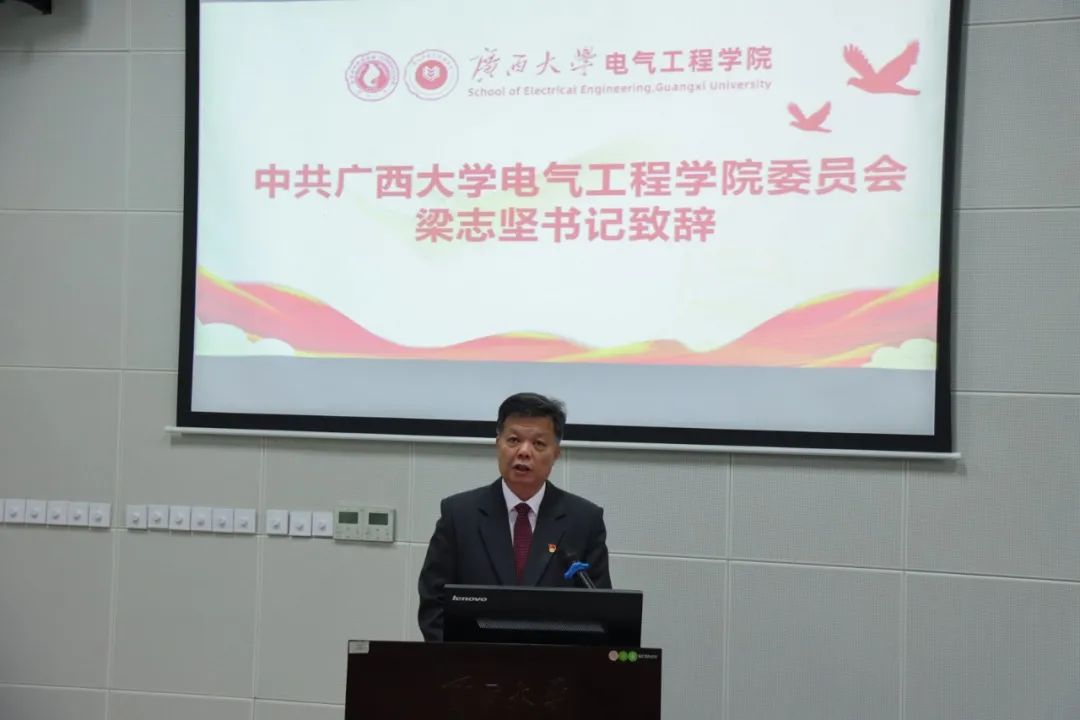 院党委书记梁志坚在致辞中肯定了上一届团委的工作成效,并向学院团委和全院团员青年提出三点希望:一是坚定理想信念,提高政治站位,坚决抵制各种错误思潮和不良风气的影响;二是勇担时代使命,练就过硬本领,深入学习专业知识,勇于实践创新;三是打造特色共青团项目,服务学生成长成才,主动适应新时代团员青年的新变化、新需求。