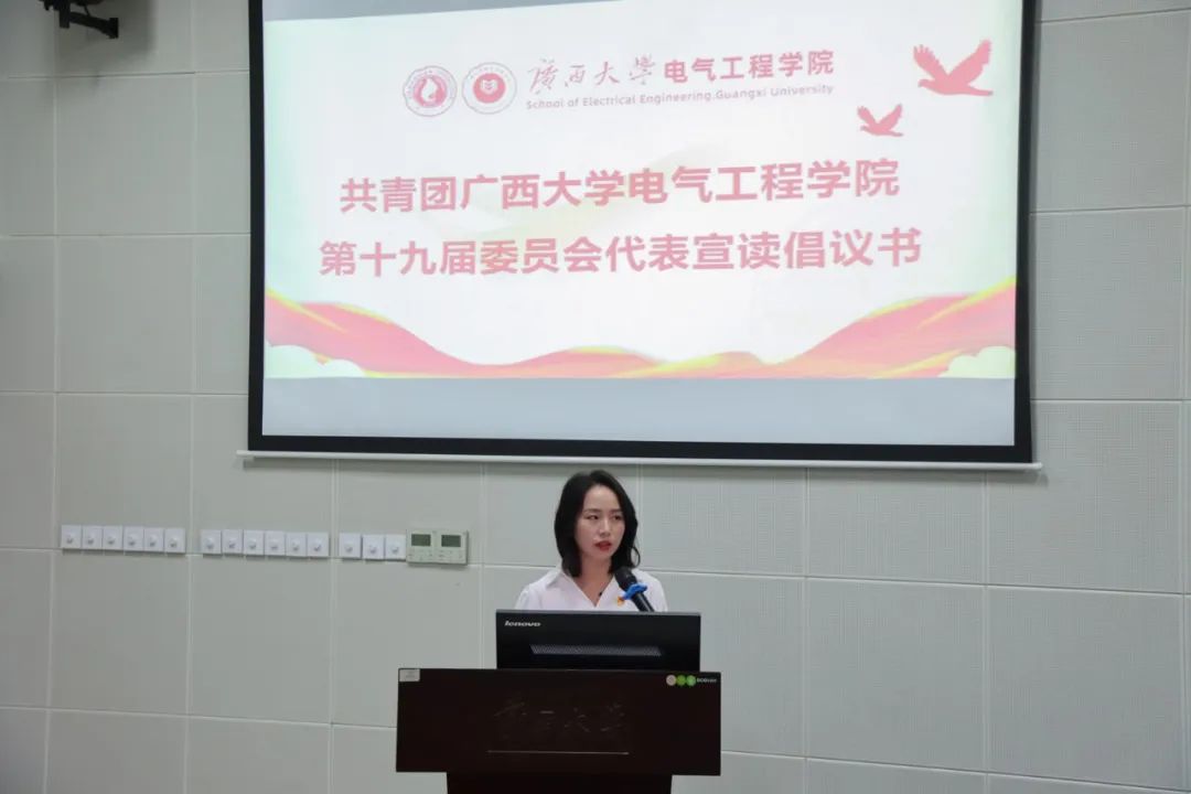最后,学院团委副书记李娟向全院团员青年发出如下倡议:一是坚定不移跟党走,做有理想的电气青年;二是胸怀“国之大有者”,做有担当的电气青年;三是锤炼过硬本领,做肯奋斗的电气青年,并呼吁同学们高举团结的旗帜,砥砺奋进,奏响灿烂夺目的青年篇章。