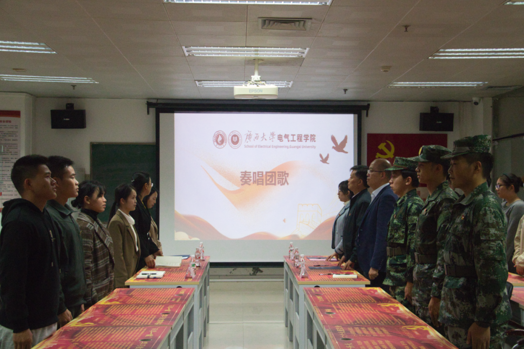 为贯彻落实党的二十大精神和全国教育大会精神,有效发挥退伍大学生群体政治过硬、作风优良、集体观念强的优势11月28日下午,我院在综合楼110室召开“戎“耀先锋——退伍大学生功能型团支部(以下简称“‘戎’耀先锋团支部”)成立大会。我院党委书记梁志坚、党委副书记李道洋、校团委老师秦凤微,学院团委书记蒋冬连,学院团委副书记李娟、冯敏,电力系统智能调度与控制团支部书记陈晓璇、众创空间团支部书记韦海梅以及退伍大学生团员参加本次大会。会议由李娟老师主持。
