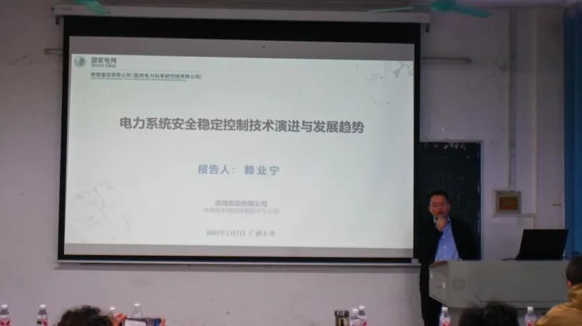 为进一步加强校企合作,1月7日,国电南瑞科技股份有限公司电网稳定控制技术分公司党委副书记、总经理赖业宁博士一行到访我院,与我院开展“党建+业务”双融双促交流会。此外,赖业宁博士,新技术预研部经理黄杰博士到我院分别作题为《电力系统安全稳定控制技术演进及发展趋势》和《能源的信息-物理-社会系统视角下的电碳协同管理》的学术报告。我院电气工程系主任陈碧云老师主持会议,150余名师生参加学术报告会。