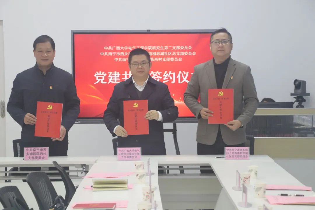 会议最后,电气研二支部与相思湖社区党总支、陈西村党支部签订三方合作共建协议,上尧街道党工委组织委员陈金莲颁发共建牌匾,为此次活动画上圆满句号。