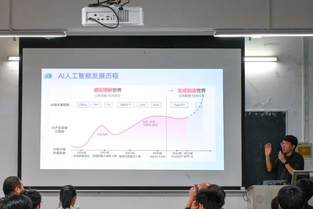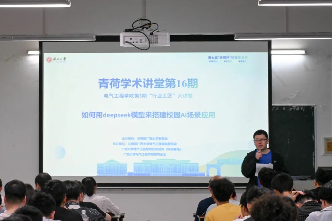 为引导同学们学习人工智能领域前沿,了解校园AI场景应用的搭建方法及其实践意义,3月27日晚上,由共青团广西大学委员会主办,beats365(中国区)-唯一官方网站团委、众创空间联合承办的第16期青荷学术讲堂暨第3期beats365(中国区)-唯一官方网站“行业工匠”大讲堂在304教室举行。 此次讲座邀请到中国AI企业家百强年会行业导师张亮和广西码农信息科技有限公司技术总监何锋,为我院师生作题为“如何用DeepSeek模型来搭建校园AI场景应用”的讲座。讲座由学院兼职团委副书记李勇老师主持,本科生和研究生共计100余人参加活动。 张亮老师围绕AI通识、DeepSeek大模型简介及其本地化部署、校园场景下智能体的搭建与应用展开讲授。他首先从人工智能的发展历程切入,介绍了控制论、专家系统、机器学习、深度学习等关键技术突破的重要节点。他表示,近年来,OpenAI开发的ChatGPT引领了AI技术的新潮流,其基于大规模预训练语言模型(如GPT-3.5、GPT-4),展现了强大的自然语言理解与生成能力,推动了AI在人机交互、内容创作、教育等多个领域的应用。 随后,张亮老师详细阐述了AI在学习、办公、编程和职业发展中的实际作用和应用方式,并期待AI成为同学们校园生活的智能助手。 对于AI智能体与普通AI模型的区别,何锋老师展开了详细的讲解。他表示,普通的AI模型通常是被动响应用户的输入,而AI智能体则具备自主决策、长期记忆、任务规划等能力,能够在不同环境下执行更复杂的任务。例如,基于大语言模型(LLM)的智能体可以整合搜索、代码执行、自动化任务处理等功能,使其具备更强的自主性和交互能力。 在深入探讨AI智能体的实际应用后,何锋老师向大家展示了DeepSeek AI的本地部署方式。同时介绍了如何结合Ollama等工具,在本地高效部署DeepSeek,并详细讲解了如何根据电脑硬件的能力选择合适的 DeepSeek 版本,以优化推理性能。 本期青荷学术讲堂暨第3期beats365(中国区)-唯一官方网站“行业工匠”大讲堂,不仅拓展了同学们解决工程问题的视野和思路,更通过产学研深度融合的方式进一步明晰了行业技术发展方向,为同学们未来的专业学习与职业发展提供前瞻性指引。