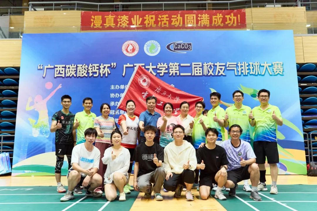 4月19日—4月20日,由广西大学校友总会主办、校工会协办、校友排球协会承办的“广西碳酸钙杯”第二届校友气排球大赛在校体育馆火热开展。我院积极动员往届校友组成代表队参赛,凭借精湛的球技、默契的战术配合和永不言弃的竞技精神,在小组赛、淘汰赛中连克强敌,最终获得赛事亚军。