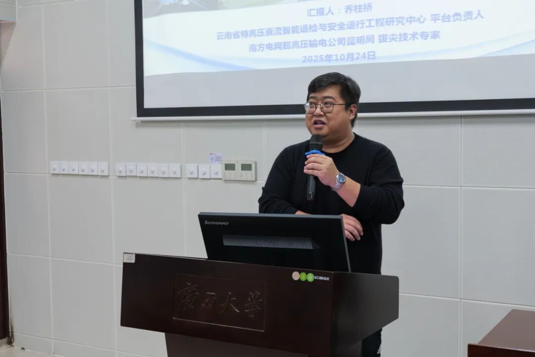 10月24日上午,我院“名师电堂”系列学术讲座在六二阶教室举行。南方电网超高压公司南宁局数字化拔尖技术专家卢英俊高级工程师、昆明局生产技术部(生产指挥中心)状态监测分析组组长乔柱桥高级工程师担任主讲,我院2024级、2025级电气工程专业硕士研究生全体参加本次讲座。讲座由我院电气工程系主任、学院iPso研究所所长陈碧云老师主持。