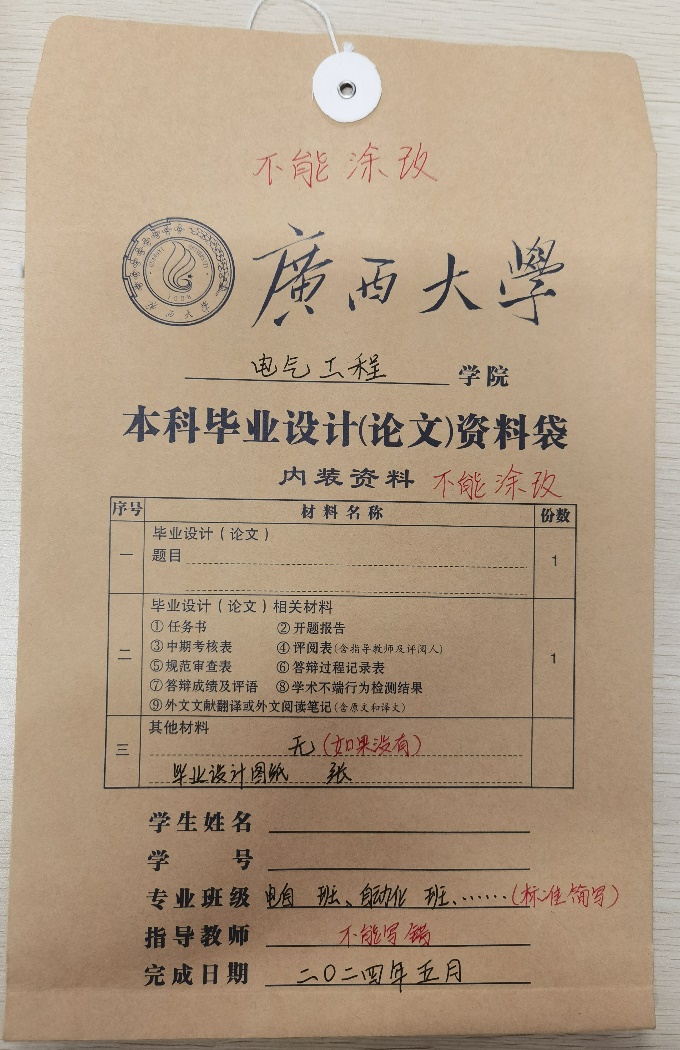 电气学院2024届毕业(设计)论文材料归档通知