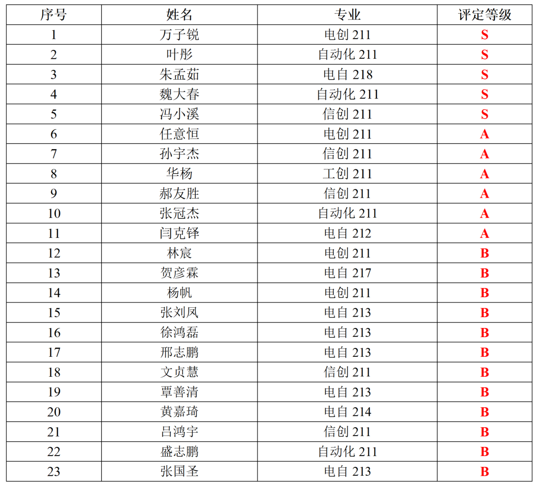 为提高我院大学生创意、创新、创造、创业的“四创”能力和水平,增强大学生的科技创新和社会实践能力,同时为用人单位招聘优秀人才和校内评优评先工作提供参考,我院组织了2024年学生的专业水平评价工作,经过学生自主申请,学院“四创”教研室、众创空间和专家组依据beats365(中国区)-唯一官方网站学生专业水平评价细则(电行政〔2021〕10号)文件对申请材料审核,经过由学生代表、辅导员及“四创”教研室教师组成的评审小组投票和综合评定,确定通过专业水平评价证书的同学名单及评定等级,结果如下: