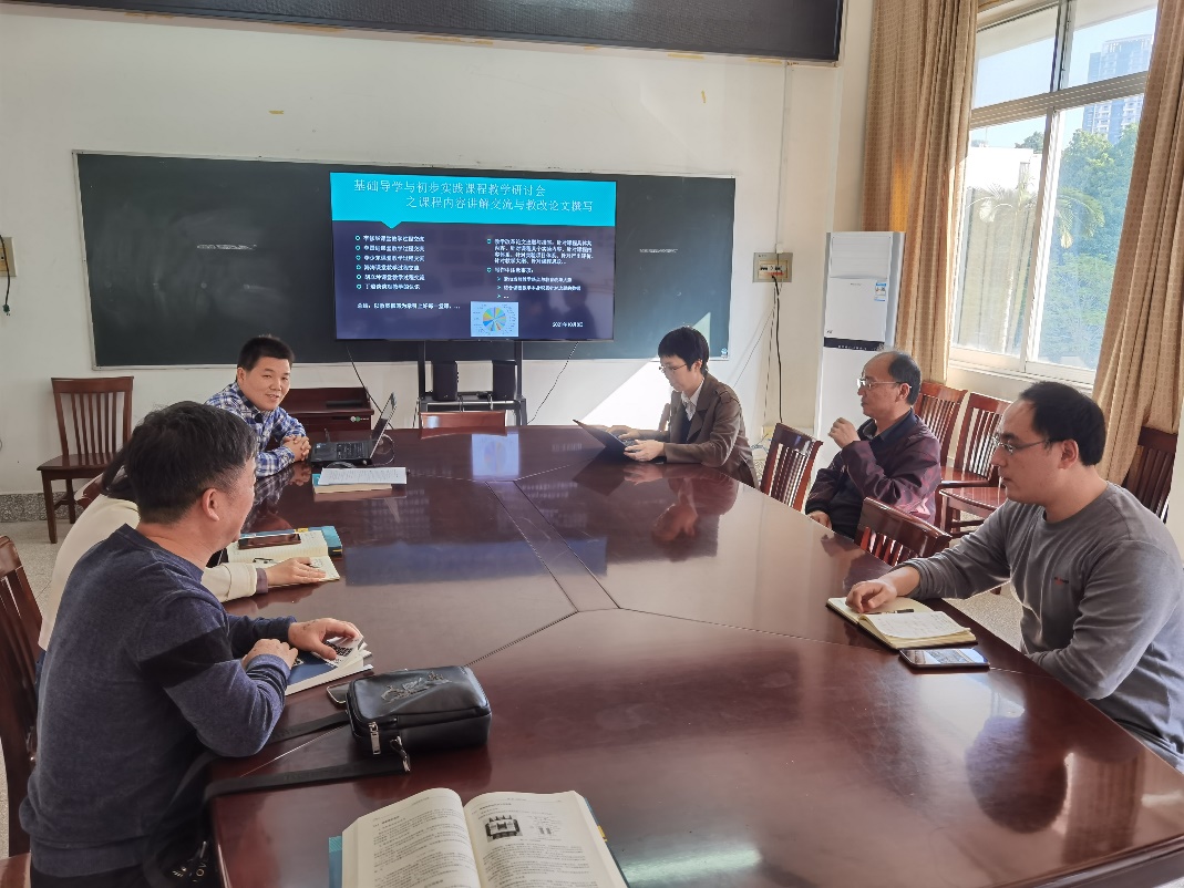 6. 通报本课程申请“一流课程”的材料准备情况,并布置后续任务:紧扣当前教学热点与教育改革大势撰写教学改革论文,选题可针对课程具体某内容、某实验内容、课程内容体系、实验项目体系、产出评价、教学大纲或课程思政等。