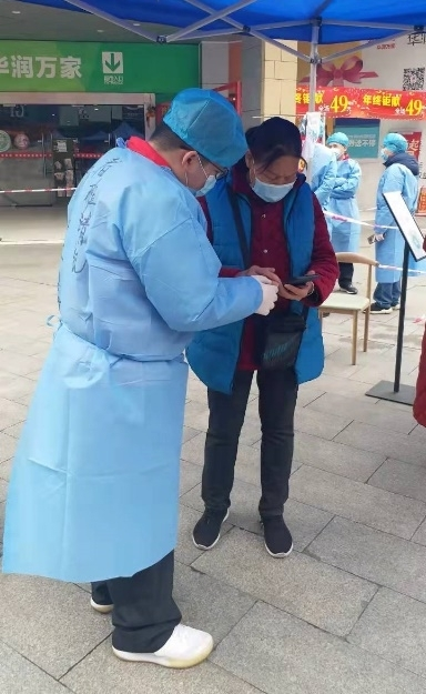 1 班靖凯正在检查市民的健康码