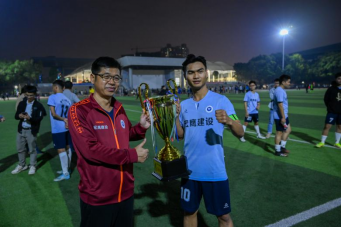 赛后,场外公众与足球队员们欢呼庆祝,纷纷与冠军奖杯合影留念,这是我院足球队史上的光辉一刻,我们是冠军!