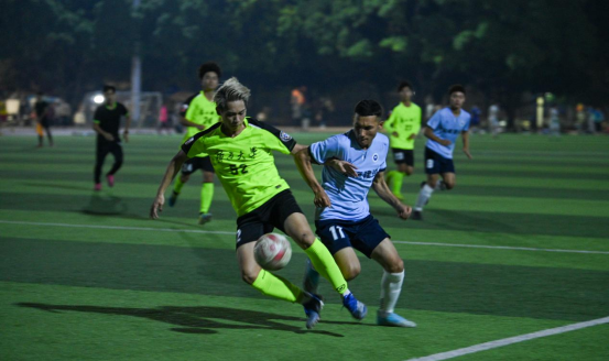 决赛我院对战体育学院,在下半场,我院进攻,对方守门员扑球防守失败,我院成功拿下一球,鼓声响起,场外加油观众的欢呼声此起彼伏,比分来到11,这也给对手造成一定压力,我院队员奋起直追,比赛愈加激烈。临近比赛末,体院队员又进一球,但我院队员依旧奋力进攻,不怯于沉重的压力,不弃于落后的局面,将体育精神展现得淋漓尽致。