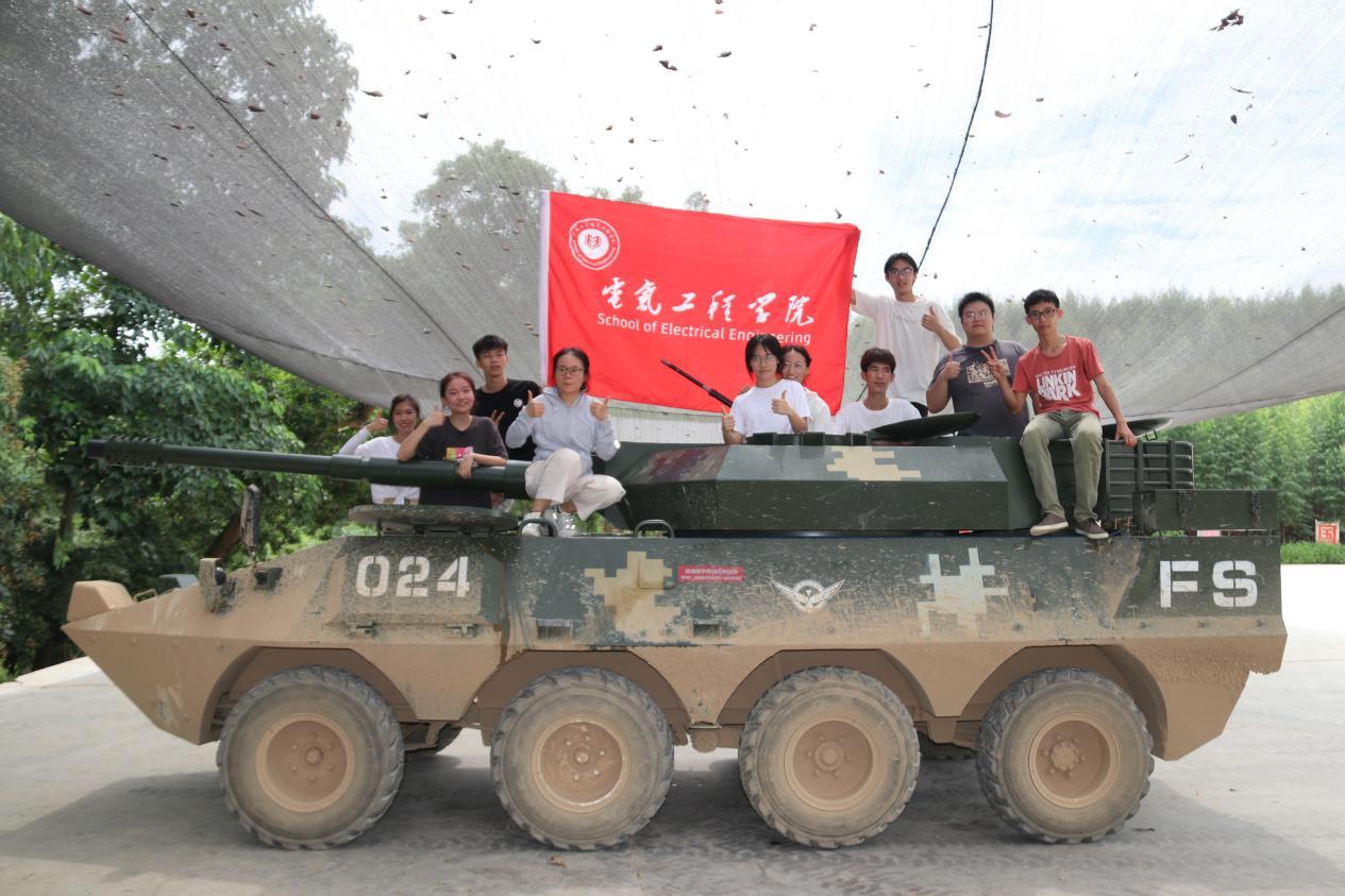 体验完“飞夺泸定桥”,随即而来地便是装甲车地乘坐体验。装甲车看似笨重,实则快如闪电。一个又一个的弯道漂移,火力全开直上高坡,于山林之中横冲直撞,留下的只有车尾烟尘滚滚。装甲车上,每一位同学都不能坦然自若,在速度与激情中,切实体会到了装甲作战的惊心动魄。鲁迅曾言:“此后如竟没有炬火,我便是唯一的光”。经此体验,有一份热,发一份光,各成员的爱国之心愈加炽热,愿得此身长报国!
